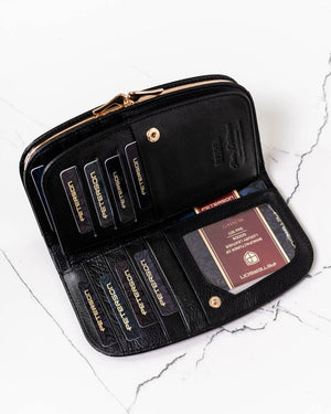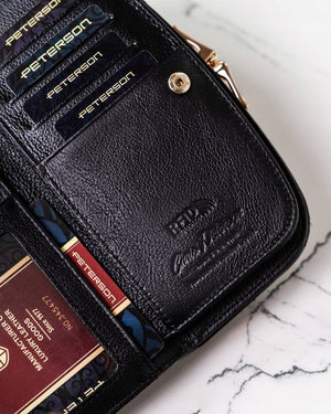 Šis elegantais sieviešu maks no Peterson kolekcijas ir izgatavots no augstas kvalitātes īstas ādas. Melnā krāsa nodrošina klasisku un daudzpusīgu stilu, savukārt lielais izmērs nodrošina pietiekami daudz vietas visām nepieciešamajām lietām. Ar vairāk nekā 15 karšu nodalījumiem un atsevišķu nodalījumu monētām šis maks ir praktiska un stilīga izvēle ikdienas lietošanai.