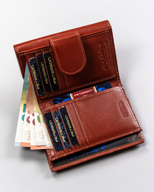 Šis elegantais sieviešu maks no Peterson kolekcijas ir izgatavots no augstas kvalitātes īstas ādas. Tā brūnā krāsa piešķir tam klasisku un stilīgu izskatu. Vidēja izmēra maks ir lieliski piemērots ikdienas lietošanai, un daudzie karšu nodalījumi un atsevišķs nodalījums monētām nodrošina ērtu un organizētu mantu glabāšanu.