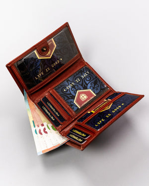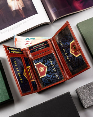 Šis elegantais sieviešu maks no Peterson kolekcijas ir izgatavots no augstas kvalitātes īstas ādas. Tā gaiši brūnā krāsa piešķir smalkumu un stilu. Vidēja izmēra maks ir praktisks un ērts ikdienas lietošanai. Tam ir 6-10 karšu nodalījumi, kas palīdzēs jums sakārtot visas jūsu kartes. Turklāt makam ir atsevišķs nodalījums monētām, nodrošinot ērtu un drošu glabāšanu. Ar izmēriem 9 cm x 12,5 cm x 3,5 cm šis maks lieliski iederēsies gan jūsu rokassomiņā, gan kabatā.