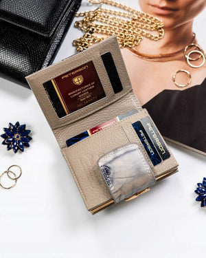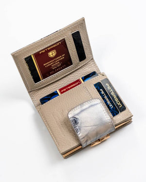 Šis elegantais sieviešu maks no Peterson kolekcijas ir izgatavots no augstas kvalitātes īstas ādas. Sudraba krāsa piešķir modernitāti un stilu, un kompaktais izmērs padara to ērtu nēsāšanai katru dienu. Makam ir vairāk nekā 10 karšu nodalījumi un atsevišķs nodalījums monētām, padarot to ārkārtīgi funkcionālu un praktisku.