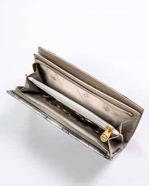 Šis elegantais sieviešu maks ir izgatavots no augstas kvalitātes īstas ādas, kas nodrošina izturību un stilīgu izskatu. Sudraba krāsa piešķir makam modernu un ekskluzīvu izskatu.