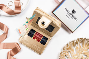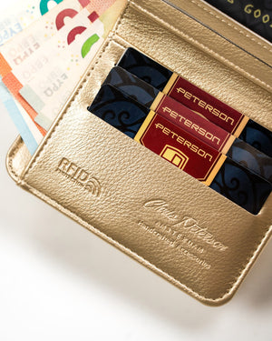 Šis elegantais sieviešu maks no Peterson kolekcijas ir lieliska izvēle tiem, kas novērtē stilu un funkcionalitāti. Izgatavots no augstas kvalitātes eko ādas, tas ne tikai izskatās grezni, bet arī ir videi draudzīgs. Zelta krāsa piešķir ekskluzivitāti, un kompaktais izmērs padara to ērtu nēsāšanai katru dienu.