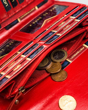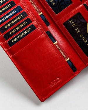 Šis elegantais un funkcionālais sieviešu maks no Peterson ir lieliska izvēle tiem, kas novērtē kvalitāti un stilu. Izgatavots no īstas ādas, tas ne tikai izskatās grezni, bet arī ir izturīgs. Sarkanā krāsa piešķir izsmalcinātību, un lielais izmērs nodrošina, ka viss nepieciešamais atrodas vienuviet.