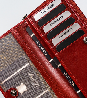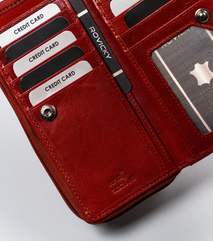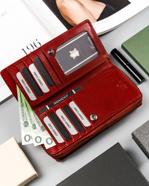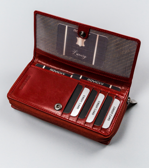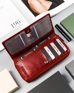 Šis elegantais un funkcionālais sieviešu maks Rovicky L41 ir lieliska izvēle tiem, kas novērtē kvalitāti un stilu. Izgatavots no īstas ādas, tas ne tikai izskatās grezni, bet arī ir izturīgs. Sarkanā krāsa piešķir ekskluzivitāti, un lielais izmērs nodrošina, ka viss nepieciešamais atradīsies vienuviet. Ar vairāk nekā 10 karšu nodalījumiem un RFID aizsardzību jūsu personas dati būs drošībā. Izmēri 10 cm x 19 cm x 3,5 cm ļauj ērti uzglabāt maku rokassomiņā vai kabatā.