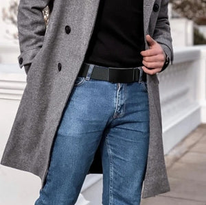 Šī vīriešu josta ar automātisko sprādzi ir lieliska izvēle tiem, kas novērtē komfortu un stilu. Tās melnā metāla sprādze nodrošina drošību, novēršot nejaušu atvēršanos.