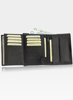 - Plašs dokumentu nodalījums zem monētu kabatas un karšu nodalījumiem.