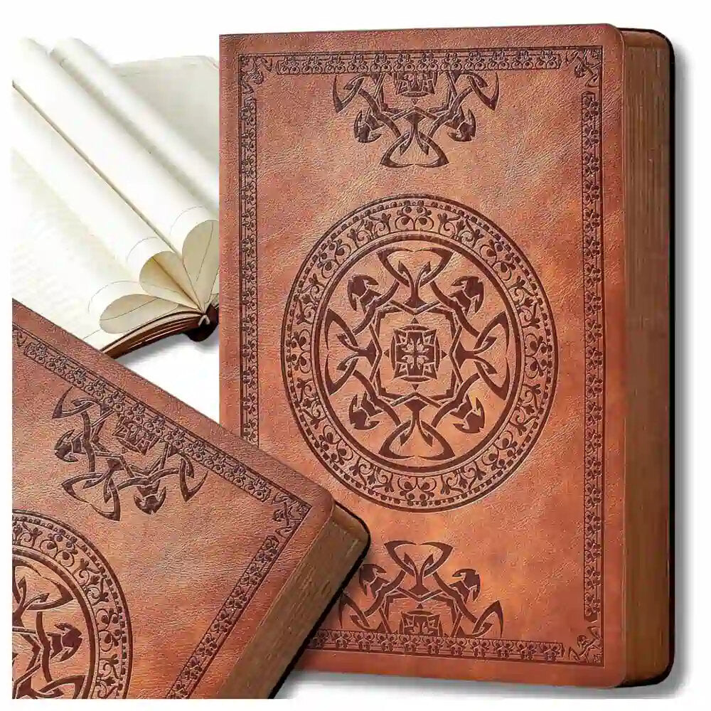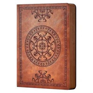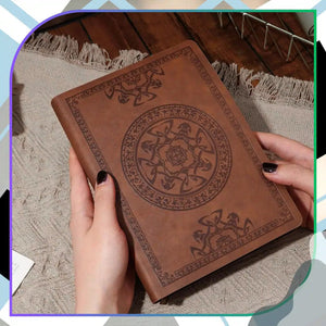 - **Materiāls un izmēri**: Izturīgs mākslīgās ādas vāks ar reljefiem vintage stila rakstiem. Formāts A6 (10,5 x 14,6 cm).