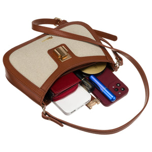 • Krāsa un izmērs: bēša, kompakta izmēra, ideāli piemērota nēsāšanai pār plecu.