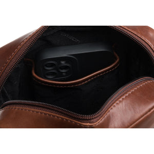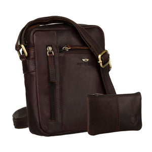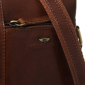 Peterson vīriešu rokassoma, izgatavota no īstas ādas, brūnā krāsā, ideāli piemērota ikdienas lietošanai.