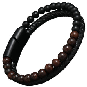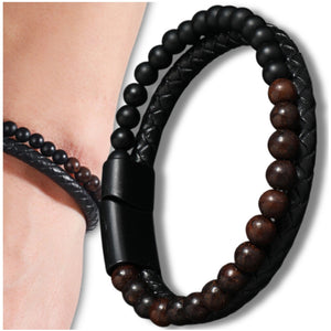 Vīriešu rokassprādze - īsta āda un akmeņi