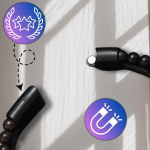 Aprocei ir ērts 21 cm apkārtmērs, tāpēc tā lieliski pieguļ lielākajai daļai vīriešu plaukstas locītavu. Tās platums ir 1,2 cm, padarot to par neuzkrītošu, bet izteiksmīgu rotājumu. Magnētiskā aizdare nodrošina drošu un ātru uzstādīšanu, un melnās matētās pērlītes harmoniski saplūst ar brūnajiem akmeņiem, radot unikālu kontrastu. Dabīgie akmeņi piešķir aprocei unikalitāti, katrs no tiem nedaudz atšķiras no citiem, padarot katru aproci unikālu.