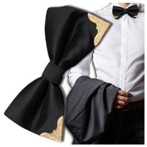 Elegants vīriešu tauriņš ir mūžīgs aksesuārs, kas uzsver stilu un klasi. Pateicoties klasiskajai melnajai krāsai un smalkajiem zelta rotājumiem galos, tas izskatās ārkārtīgi stilīgi un ir piemērots gan uzvalkiem, smokingiem, gan mazāk formāliem tērpiem. Tā ir lieliska izvēle dažādiem gadījumiem, piemēram, kāzām, banketiem, ballēm, izlaidumiem un svarīgām biznesa tikšanās reizēm. To var valkāt arī ar ikdienas tērpiem, piešķirot eleganci un oriģinalitāti. Tauriņš ir izgatavots no augstas kvalitātes poliestera, kas padara to izturīgu, neburzāmu un viegli kopjamu. Materiāls nezaudē savu formu un nav nepieciešama gludināšana, tāpēc tas vienmēr izskatās lieliski. Regulējamā aizdare ļauj to pielāgot kakla apkārtmēram no 20 līdz 42 cm, nodrošinot komfortu visas dienas garumā. Standarta izmēri 12 x 6 cm padara tauriņu ideāli proporcionālu un lieliski pieguļošu kreklam. Universālais dizains ļauj to kombinēt gan ar klasiskiem, gan moderniem tērpiem. Melns tauriņš ar zelta rotājumiem ir ideāla izvēle vīriešiem, kuri novērtē eleganci un stilu. To var valkāt ar baltu kreklu, uzvalku, fraku vai smokingu, kā arī kombinēt ar kontrastējošiem aksesuāriem, lai radītu ekskluzīvu tēlu. Tas labi sader gan ar moderniem retro, vintage stila tērpiem, gan ar klasisku eleganci. Pateicoties unikālajam izskatam, tas ir lielisks akcents, kas piesaista uzmanību un uzsver individuālo stilu. Pateicoties regulējamai siksniņai, tauriņu ir viegli uzvilkt un ērti valkāt ilgstoši. Tas ir viegls, un rūpīga izgatavošana nodrošina, ka tas labi pieguļ kreklam, neprasot pielāgošanu. Zelta rotājumi stūros piešķir tam ekskluzīvu izskatu un atšķir to no citiem klasiskajiem tauriņiem. Tā ir arī lieliska dāvana ikvienam vīrietim, kurš novērtē elegantu izskatu. Tas ir piemērots gan līgavainim, lieciniekam, kāzu viesim, gan tiem, kam patīk ikdienā uzsvērt savu stilu. Klasisks tauriņš ir obligāts aksesuārs ikviena eleganta vīrieša garderobē, kurš pievērš uzmanību detaļām un rūpējas par savu nevainojamu izskatu jebkurā situācijā. Melns elegants tauriņš ir ekskluzīvs aksesuārs, kas nekad neiziet no modes. Tas ir ārkārtīgi daudzpusīgs un to var valkāt gan formālās, gan ikdienas kombinācijās. Pateicoties izturīgajai konstrukcijai un augstas kvalitātes materiāliem, tauriņš saglabā savu nevainojamo izskatu pat pēc daudzām lietošanas reizēm. Ja meklējat stilīgu akcentu savam tērpam vai vēlaties kādam uzdāvināt īpašu dāvanu, šis tauriņš būs lieliska izvēle. Piešķiriet savam tērpam klasi un eleganci un pasūtiet to jau tagad, lai uzsvērtu savu unikālo stilu.