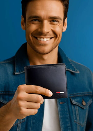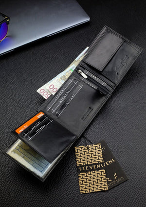 Vīriešu maks STEVENS dabīgas ādas RFID horizontāls melns premium Q2 Augstums 10 cm