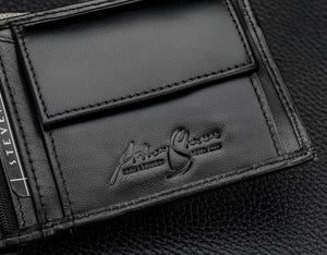 Vīriešu maks STEVENS, īsta āda, RFID, melns