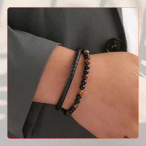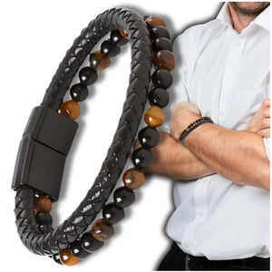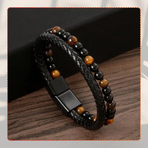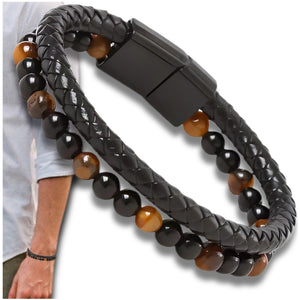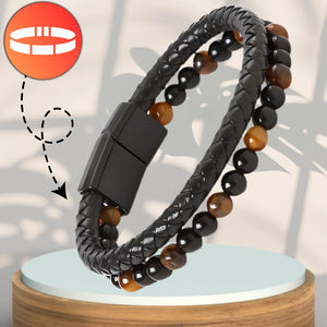 Vīriešu ādas rokassprādze ar dabīgiem akmeņiem (melna/brūna), magnēts