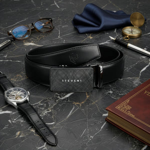 Vīriešu josta Stevens, melna, dabīga āda, automātiskā sprādze 2506