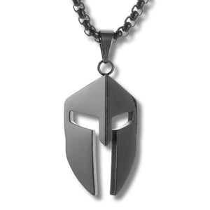 Vīriešu melna tērauda kaklarota ar spartiešu ķiveri