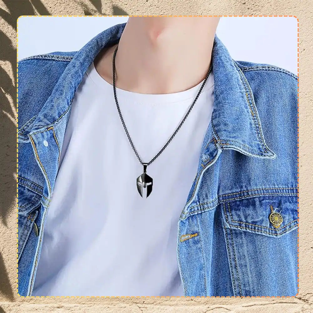 Vīriešu melna kaklarota ar spartiešu ķiveri