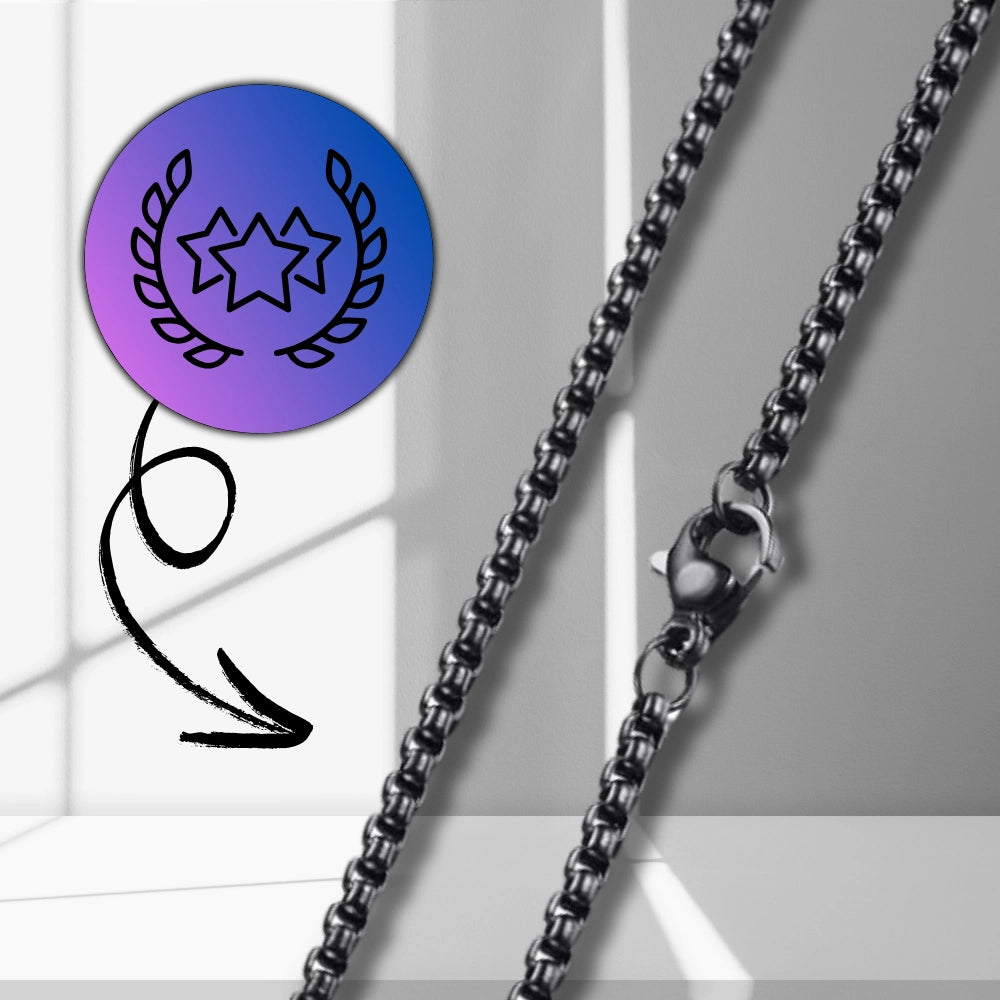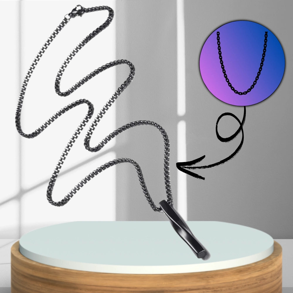 Eleganta vīriešu kaklarota ar spirālveida kulonu, izgatavota no izturīga nerūsējošā tērauda melnā krāsā. Šī izsmalcinātā kaklarota ir lieliska izvēle ikdienas valkāšanai un kā stilīga dāvana. Ķirurģiskais tērauds, no kura tā ir izgatavota, nodrošina ne tikai modernu izskatu, bet arī izturību pret koroziju un izbalēšanu, tāpēc rotaslieta ilgu laiku saglabā savu perfekto formu.
