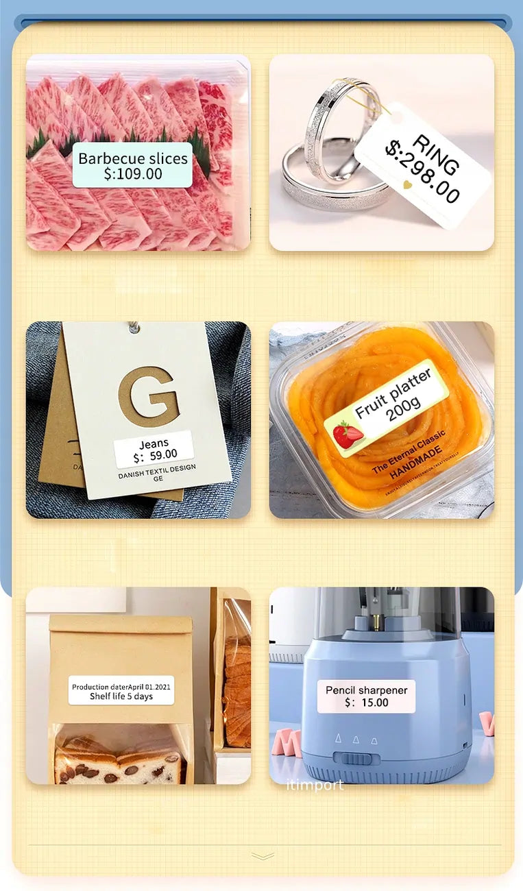 - Lietotāja priekšrocības: Ērta un efektīva etiķešu drukāšana bez papildu izmaksām par tinti vai toneriem, iespēja drukāt jebkur, pateicoties bezvadu savienojumam un integrētam akumulatoram.