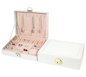 Šī lielā rotaslietu kastīte ir lieliska izvēle jūsu dārgo rotaslietu glabāšanai un organizēšanai. Tās elegantais dizains un funkcionalitāte nodrošina, ka jūsu rotaslietas tiek turētas drošībā un kārtībā.