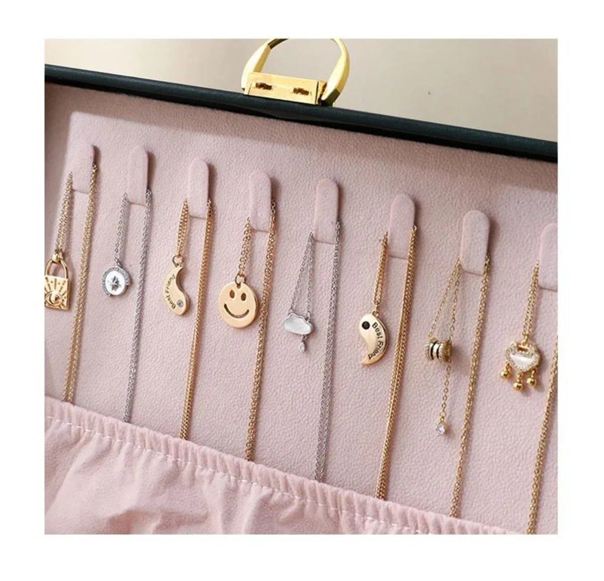 Šī lielā rotaslietu kastīte ir lieliska izvēle jūsu vērtslietu glabāšanai. Tās elegantais dizains un funkcionalitāte nodrošina, ka jūsu rotaslietas ir drošībā un kārtīgi sakārtotas.