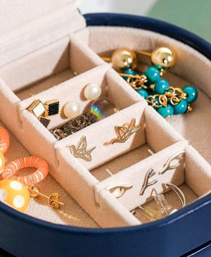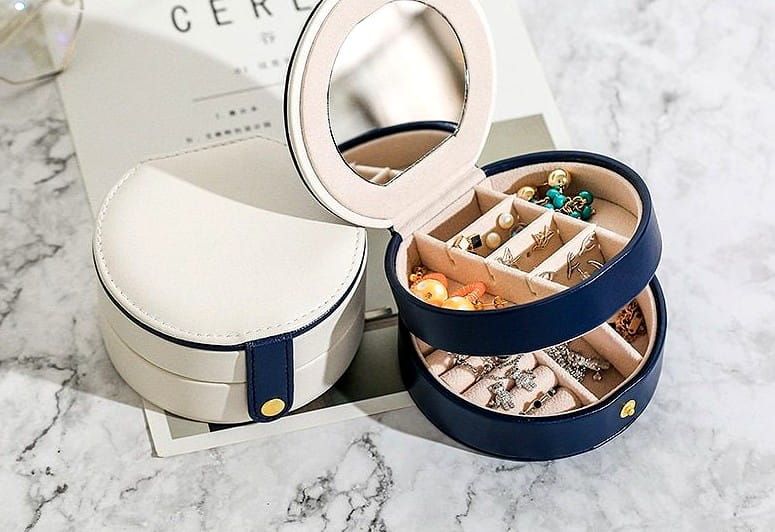 Kastīte ir kompakta un to var atlocīt, kā parādīts fotoattēlos, tāpēc tā aizņem maz vietas. Tā ir izgatavota no plastmasas un eko ādas, un iekšpuse ir izklāta ar mīkstu materiālu, lai nodrošinātu jūsu rotaslietu aizsardzību. Kastīte ir aizverama ar ērtu rāvējslēdzēju.