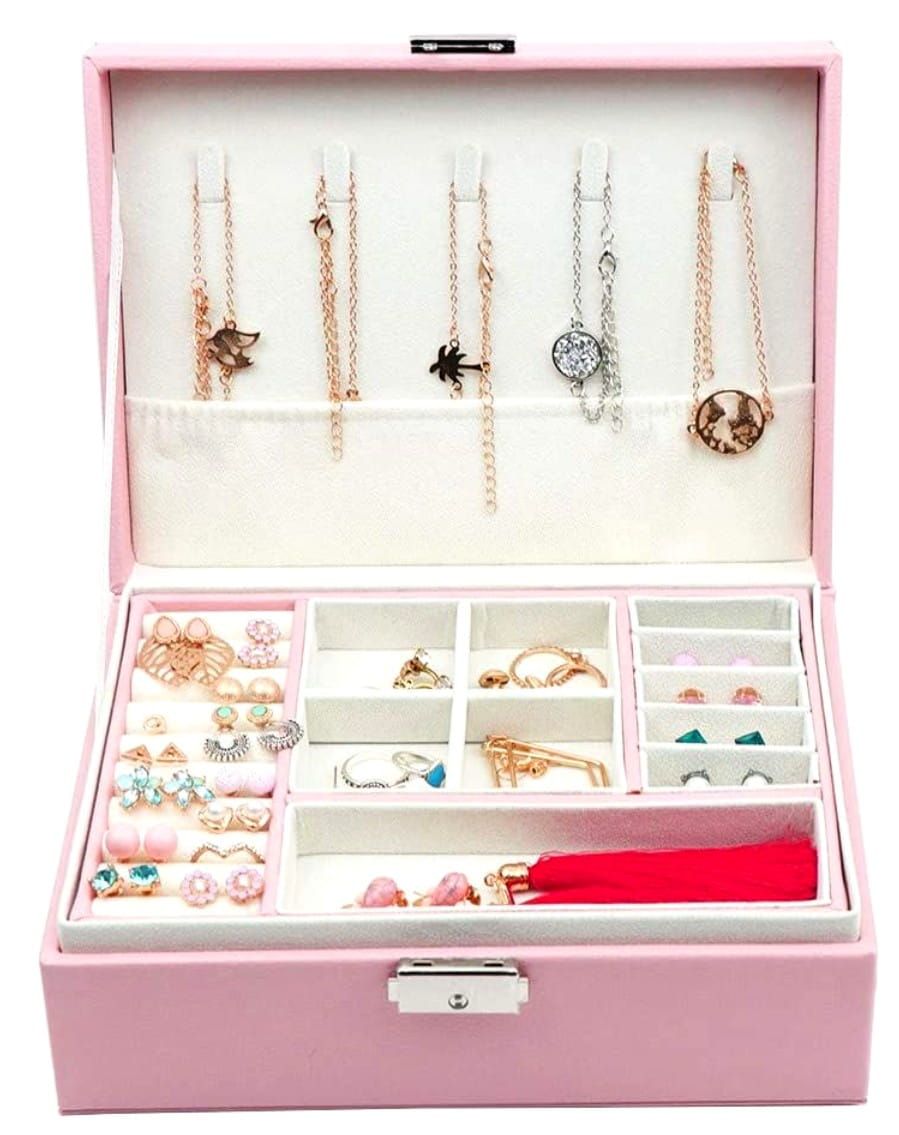 Kastes organizatoram ir sloksnes, kas neļauj vākam pilnībā atvērties, nodrošinot drošību. Šī kaste lieliski izskatās uz kumodes vai plaukta, piešķirot jūsu istabai eleganci.
