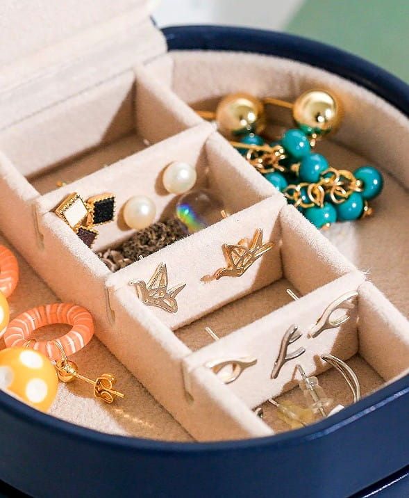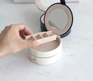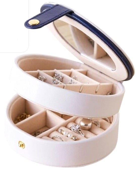 Kastīte ir kompakta un to var atlocīt, kā parādīts fotoattēlos, tāpēc tā aizņem maz vietas. Tā ir izgatavota no plastmasas un eko ādas, un iekšpuse ir izklāta ar mīkstu materiālu, lai nodrošinātu jūsu rotaslietu aizsardzību. Kastīte ir aizverama ar ērtu rāvējslēdzēju.