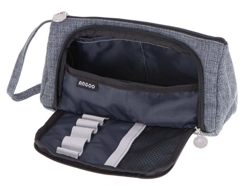 Šis pelēkais zīmuļu maciņš ar diviem nodalījumiem ir lieliska izvēle tiem, kas vēlas sakārtot visus savus skolas piederumus. Tajā ērti var ievietot zīmuļus, krītiņus, marķierus un lineālu. Tas ir arī lieliski piemērots kosmētikas vai citu mazu priekšmetu glabāšanai rokassomiņā vai mugursomā.