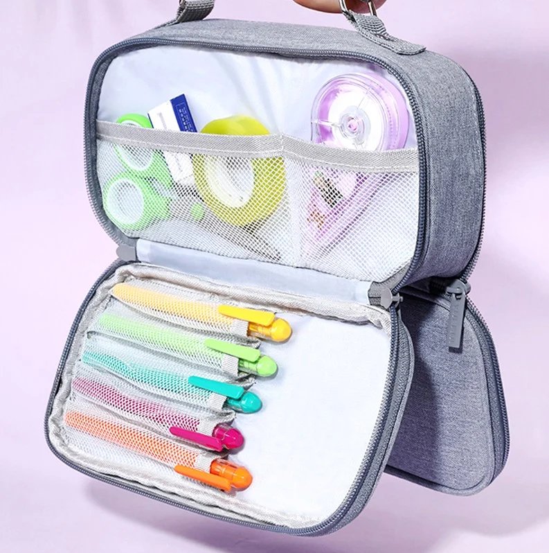 - Daudzfunkcionāls: Var izmantot kā penāli, organizatoru, instrumentu kasti vai pat kosmētikas maciņu. Piemērots gan bērniem, gan pieaugušajiem.