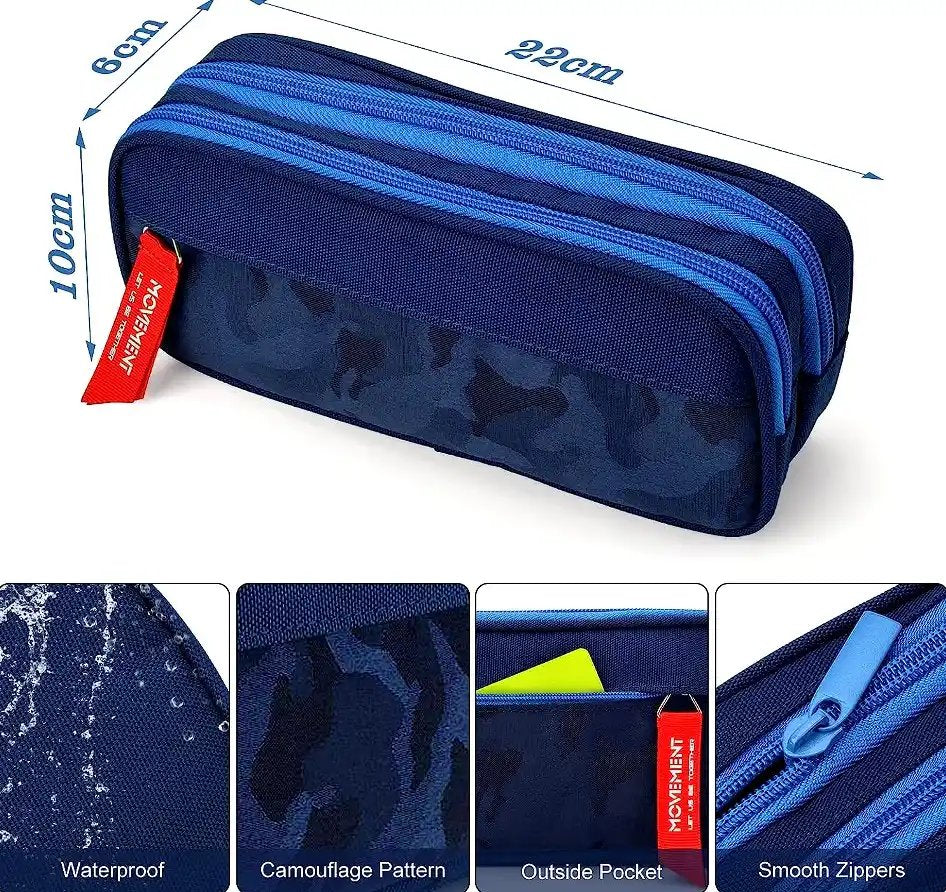 - Ietilpīgs dizains: Penālis ir 22,5 x 11 x 7 cm liels, ar diviem nodalījumiem ar rāvējslēdzēju, kas ļauj ērti uzglabāt visus skolas un biroja piederumus.