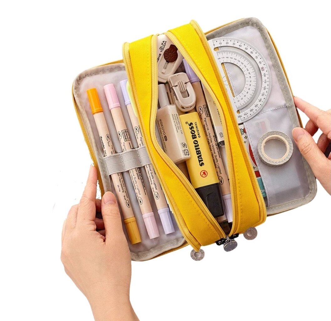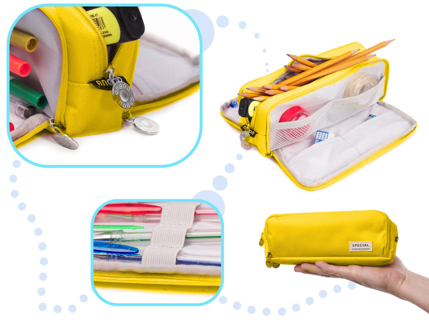 Ietilpīgs zīmuļu maciņš J8, dzeltens