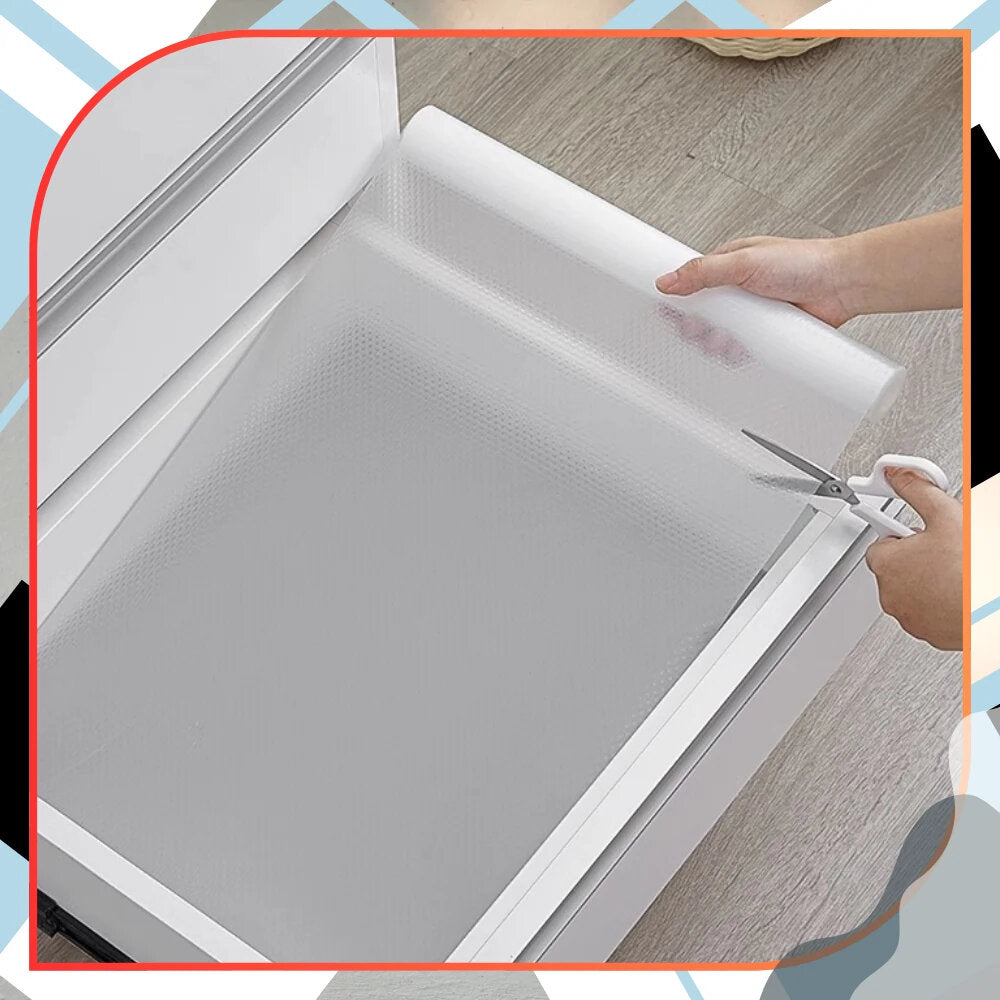 - **Produkta veids un mērķis**: Aizsargājošs neslīdošs pārklājums atvilktnēm, skapīšiem, ledusskapjiem, virtuves darba virsmām un plauktiem.