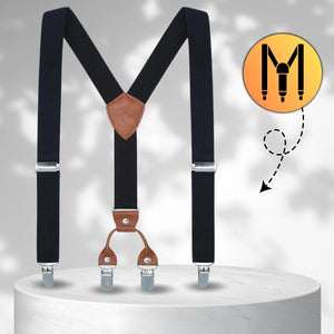 Eleganti melni vīriešu bikšturi ar smalkām brūnām detaļām, kas apvieno klasisko stilu ar modernu dizainu. Izgatavoti no augstākās kvalitātes materiāliem, šie izturīgie bikšturi ir paredzēti vīriešiem, kuri novērtē komfortu un izturību. Lieliski piemēroti gan oficiāliem pasākumiem, gan ikdienas stilam, piešķirot katram tērpam klasi.