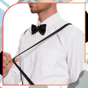 Eleganti melni vīriešu bikšturi ar regulējamu garumu un tērauda sprādzēm, komplektā ar tauriņu. Šis stilīgais aksesuārs ir lieliski piemērots gan oficiāliem pasākumiem, gan ikdienai. Izgatavoti no augstas kvalitātes materiāliem, tie nodrošina komfortu un lielisku piegulšanu.