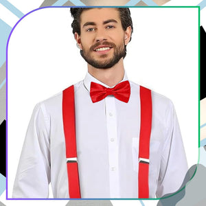- **Produkta veids un mērķis**: Eleganti vīriešu bikšturi ar regulējamu garumu un tērauda sprādzēm, komplektā ar tauriņu.