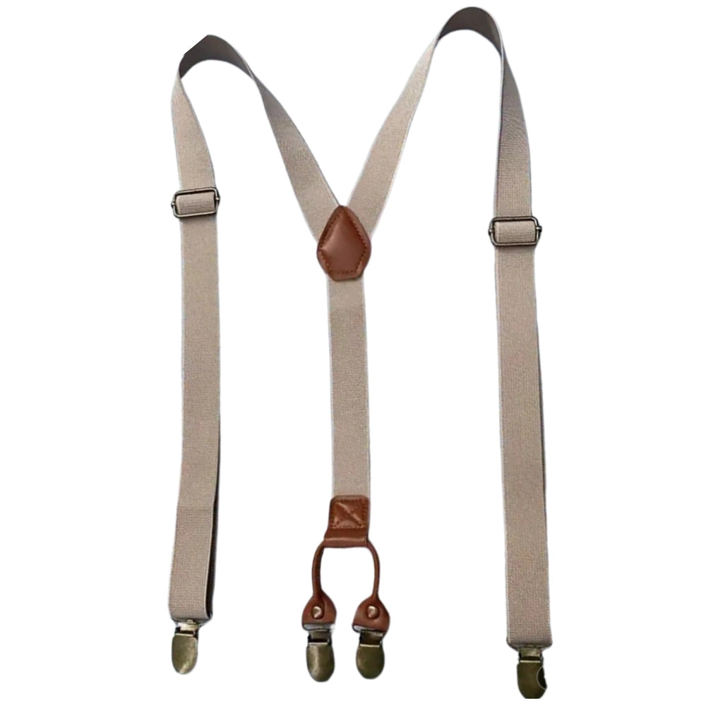 Eleganti vīriešu bēši bikšturi ar regulējamu garumu un tērauda sprādzēm.