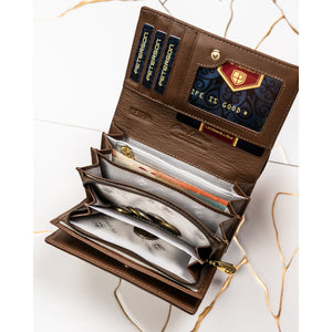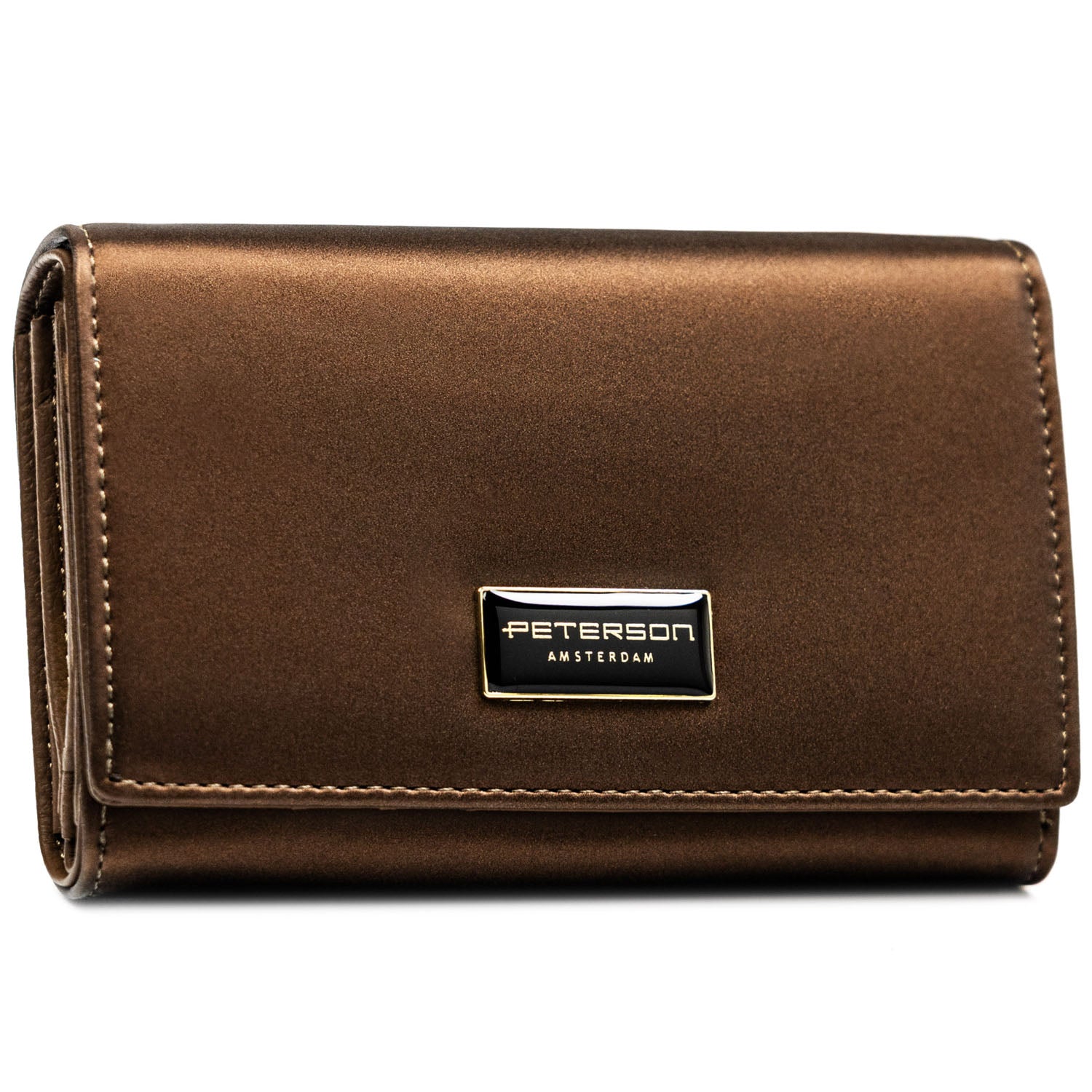 Peterson sieviešu maks, izgatavots no mākslīgās ādas, brūnā krāsā, ar RFID aizsardzību.