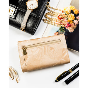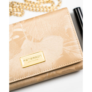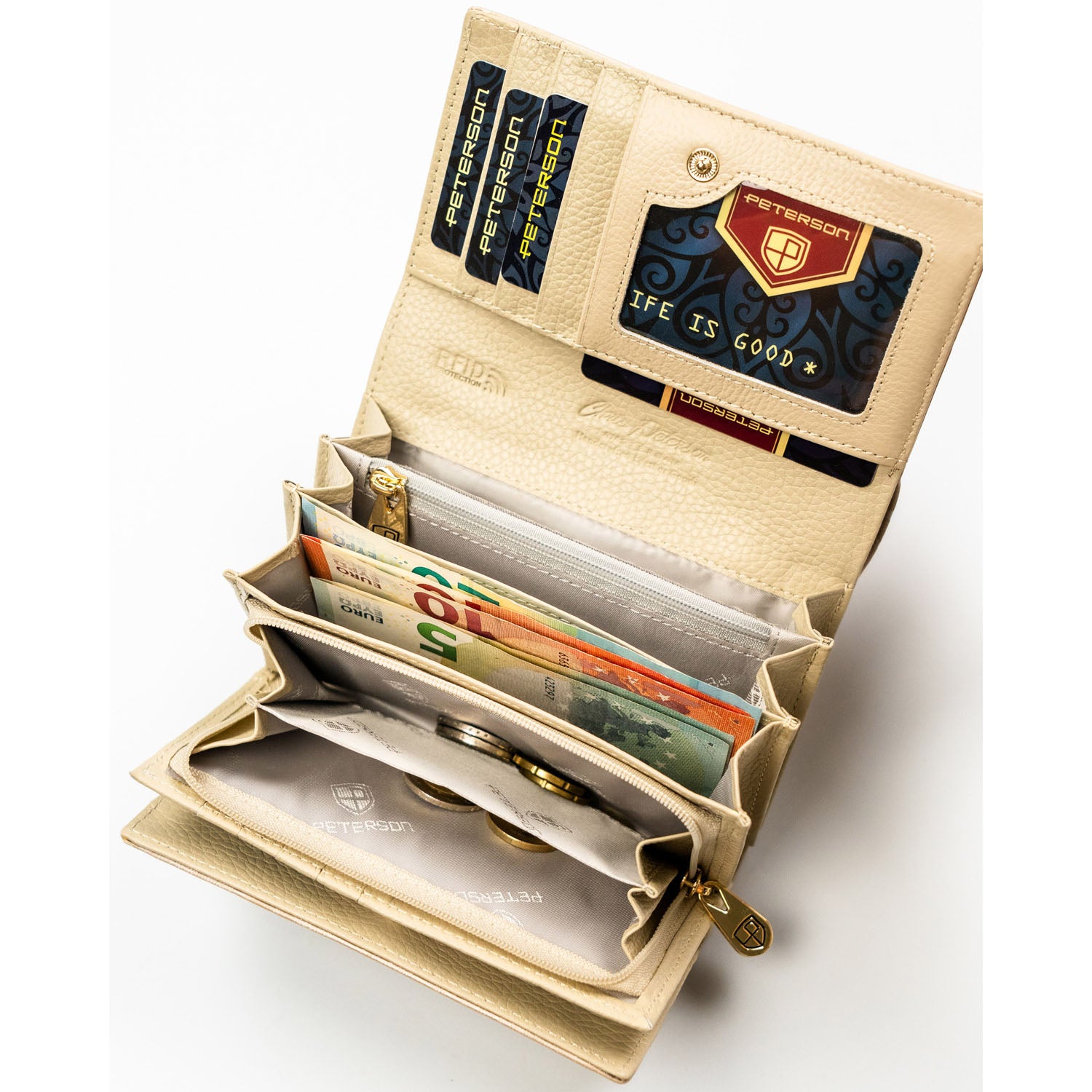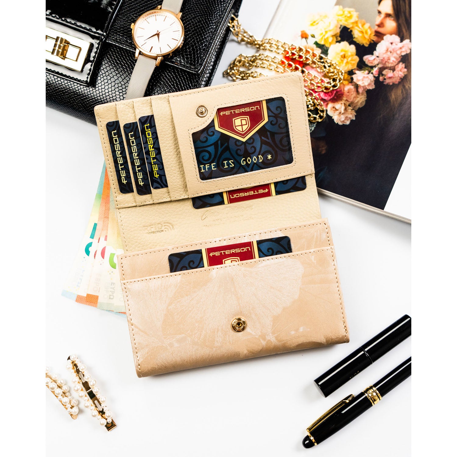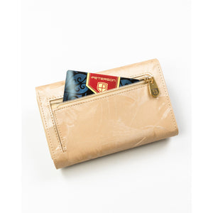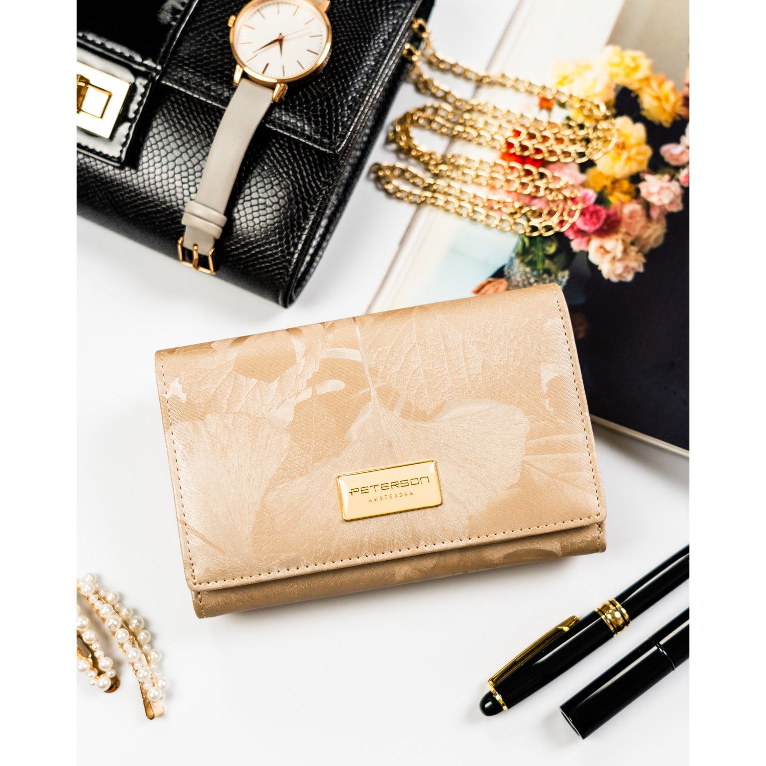 Peterson sieviešu maks, izgatavots no mākslīgās ādas, bēšā krāsā, ar aizdari.