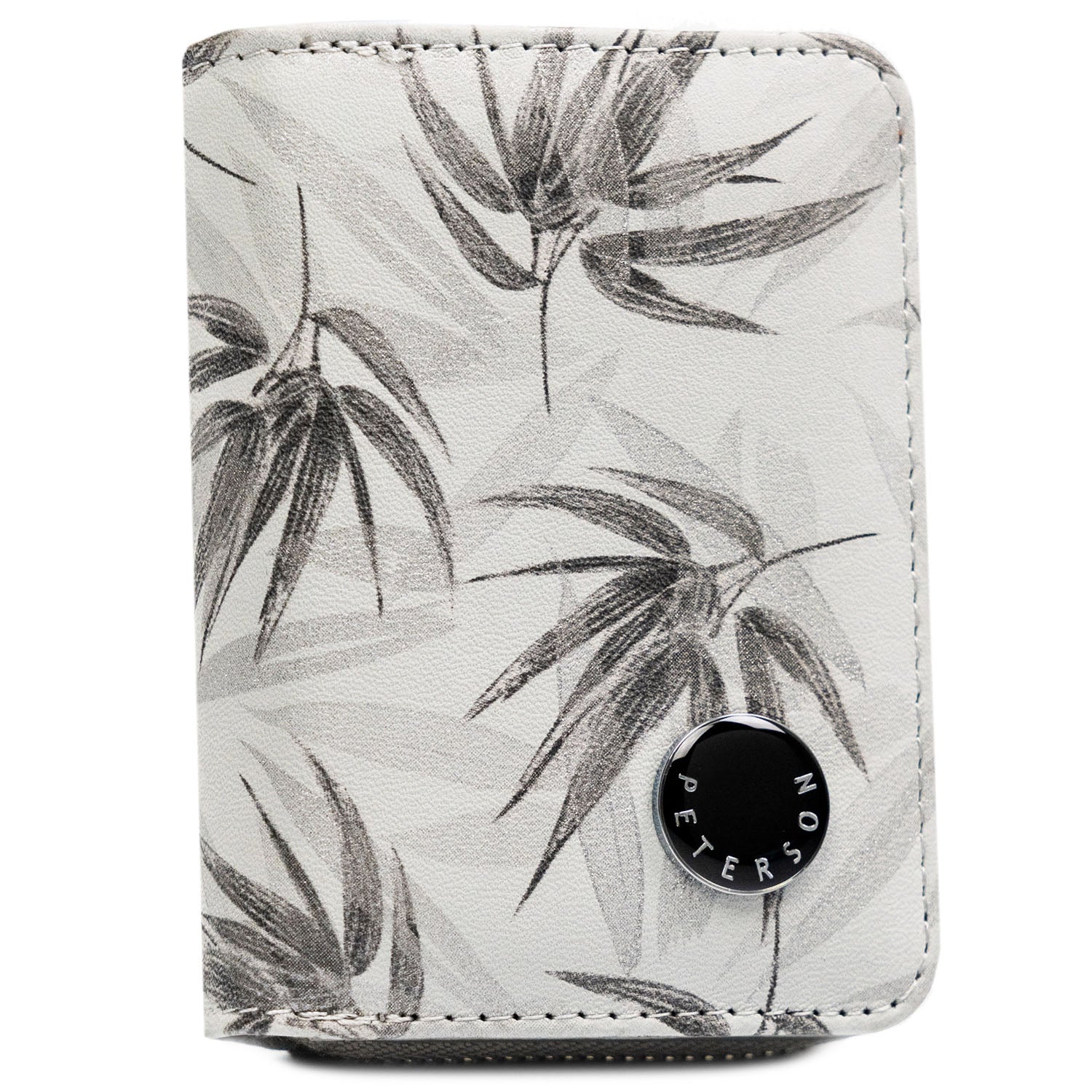 Peterson sieviešu maks, izgatavots no mākslīgās ādas, baltā krāsā, ar aizdari un rāvējslēdzēju.