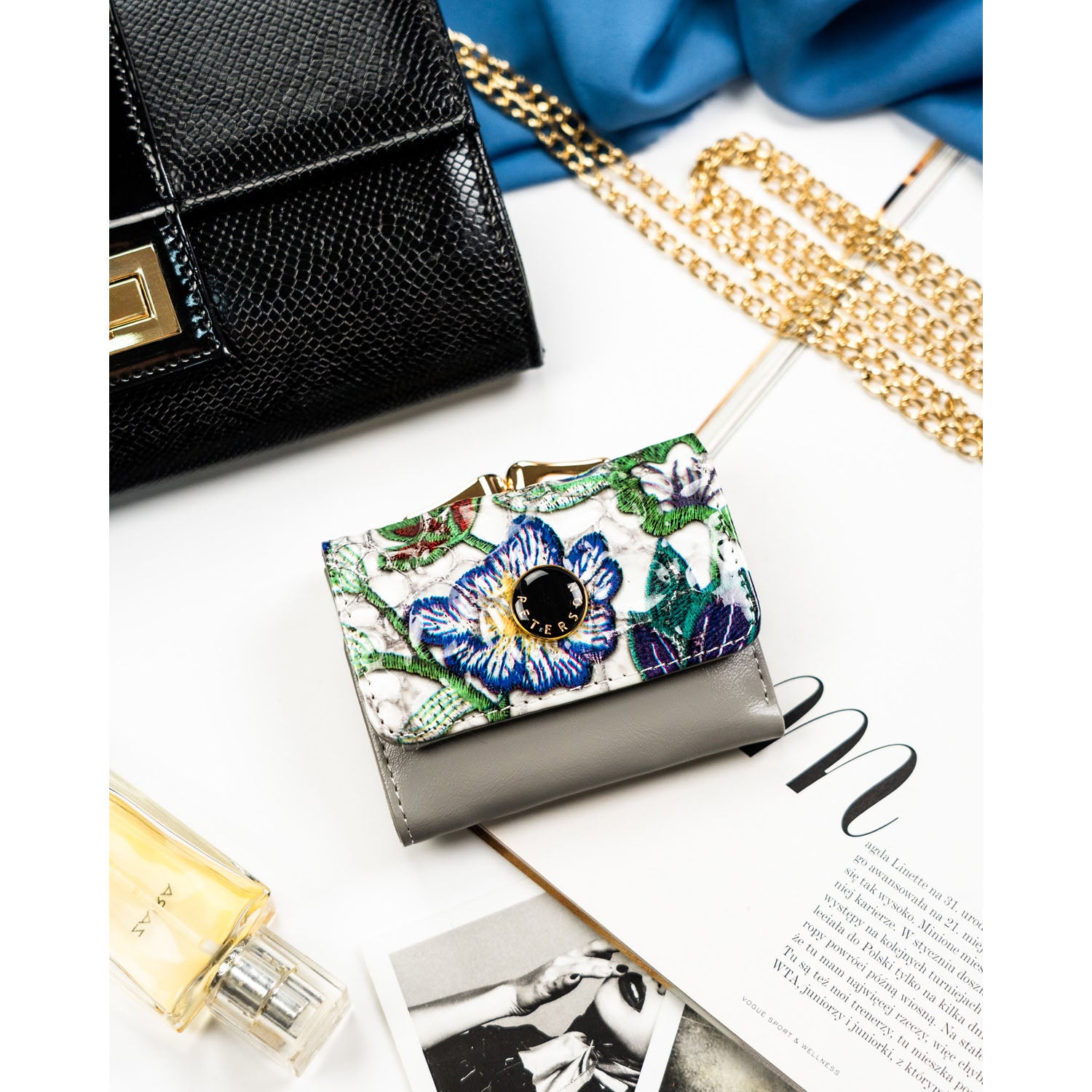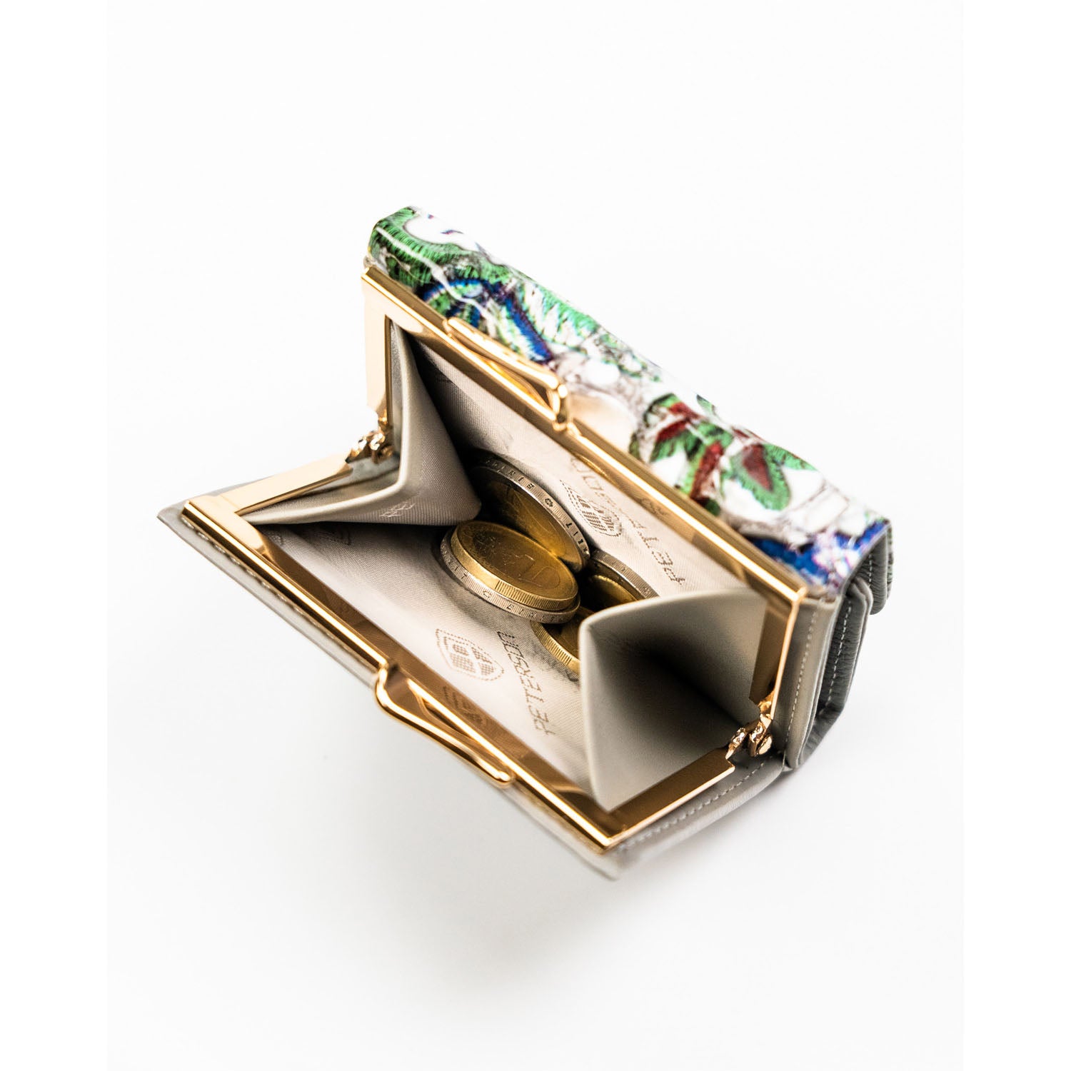 Peterson sieviešu maks, kas izgatavots no īstas ādas ar ziedu rakstu.