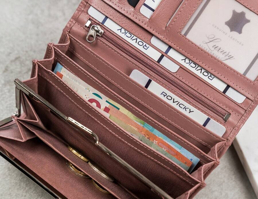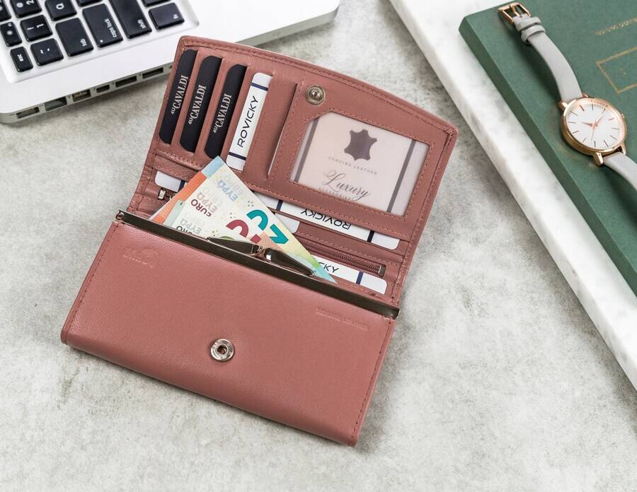 Sieviešu maks 4U Cavaldi Q148 - īsta āda, gaiši rozā, ar RFID aizsardzību