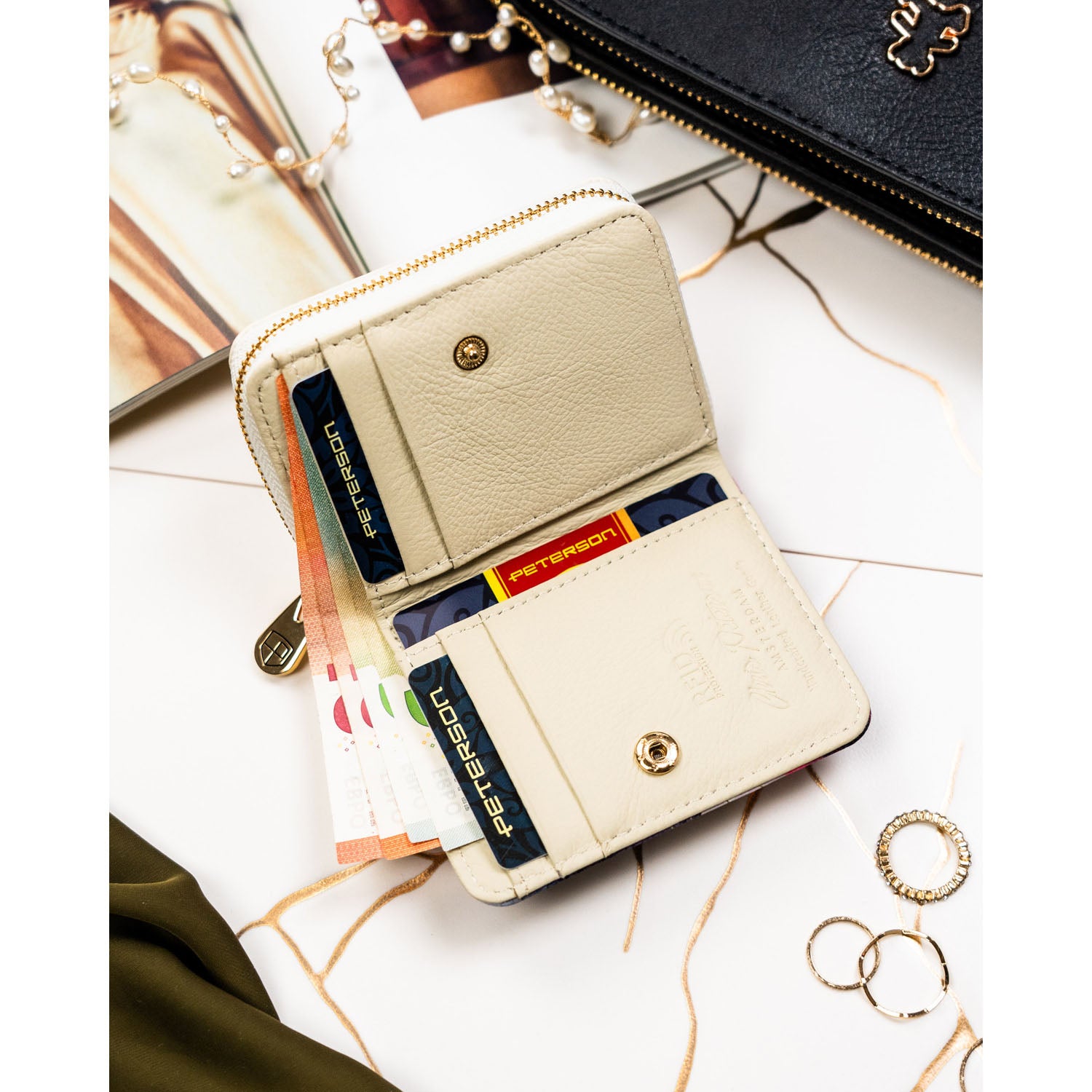 Peterson sieviešu maks, kas izgatavots no mākslīgās ādas, krāsains un kompakts, lieliski piemērots ikdienas lietošanai.