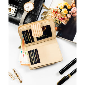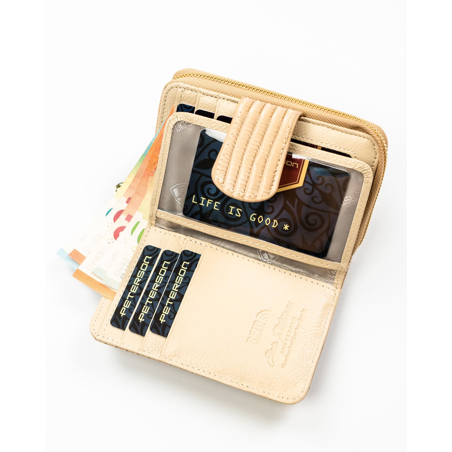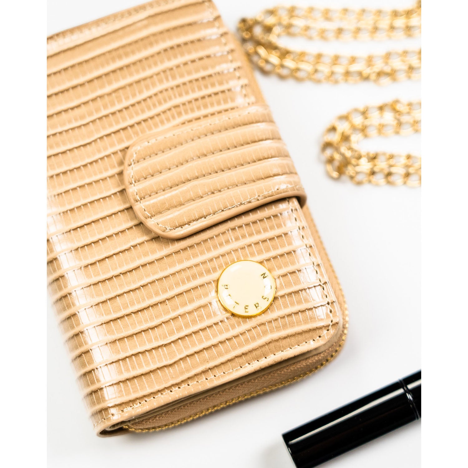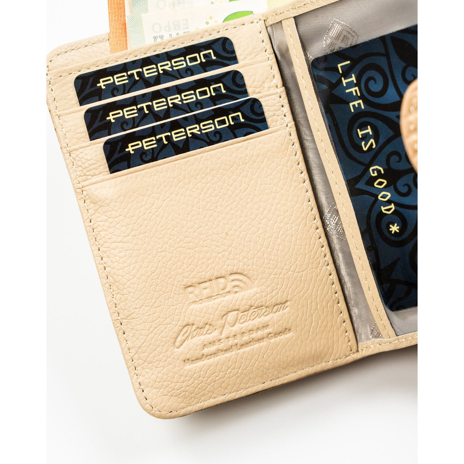 Peterson sieviešu maks, izgatavots no mākslīgās ādas, bēšā krāsā, ar RFID aizsardzību.