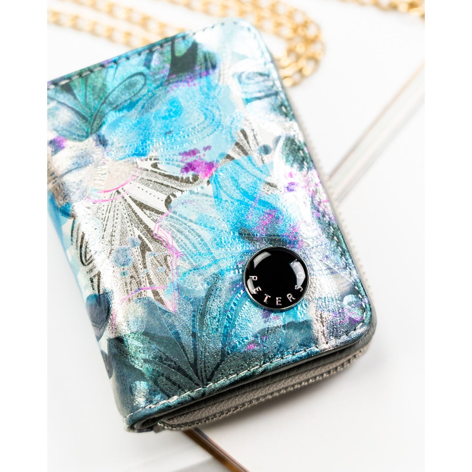 Peterson sieviešu maks, izgatavots no mākslīgās ādas, zilā krāsā, ar RFID aizsardzību.