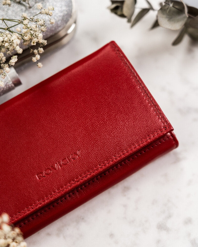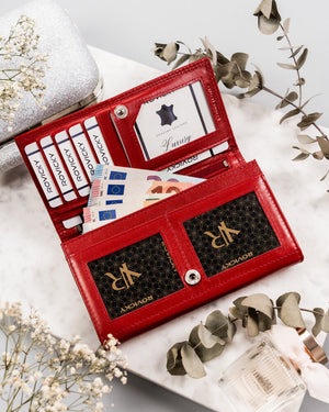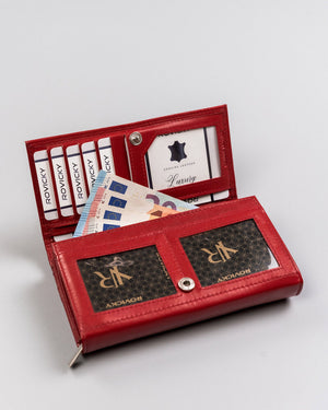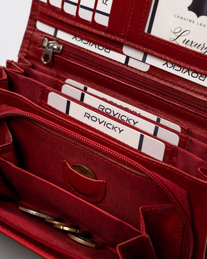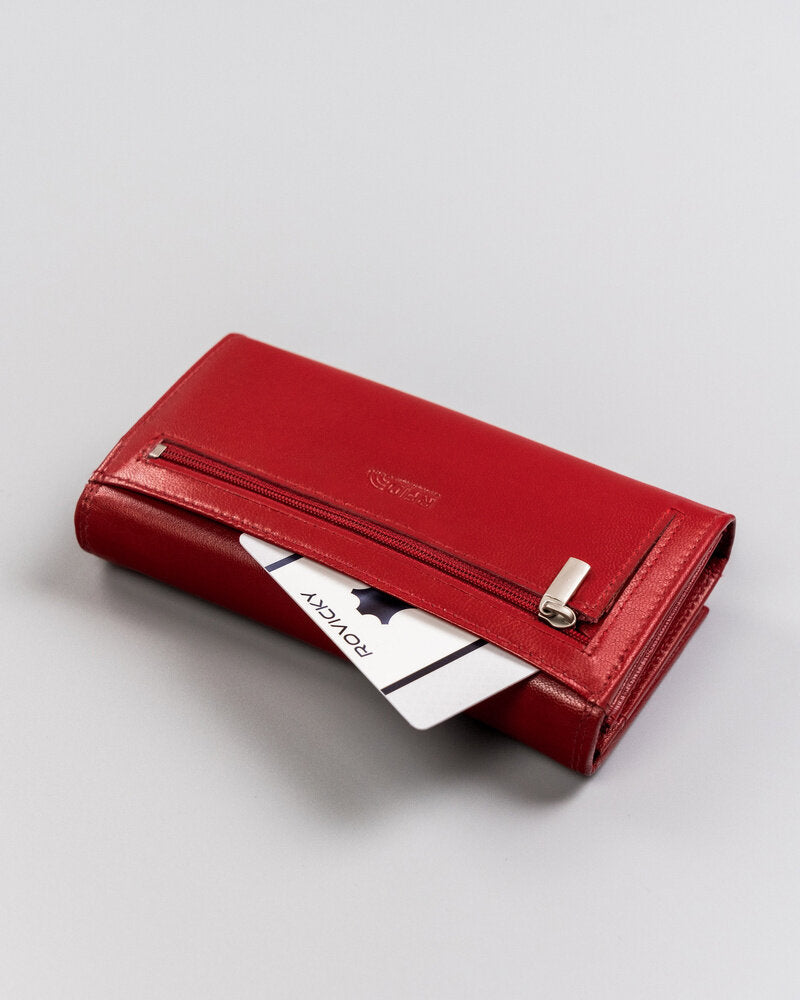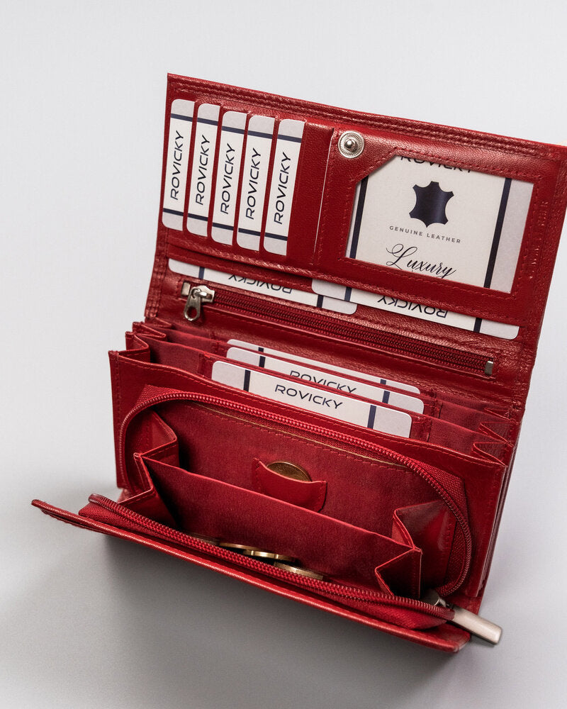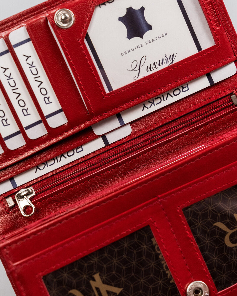 Sarkanais Rovicky maks ir liels, ietilpīgs un elegants īstas ādas maks sievietēm, kuras meklē stilu, ērtības un drošību vienā. Pateicoties RFID aizsardzībai, jūsu kartes būs aizsargātas no neatļautas skenēšanas.