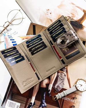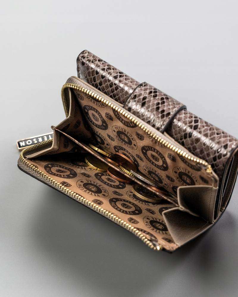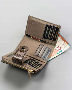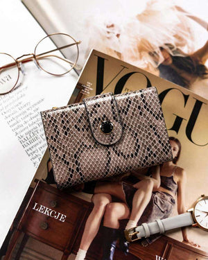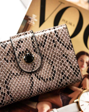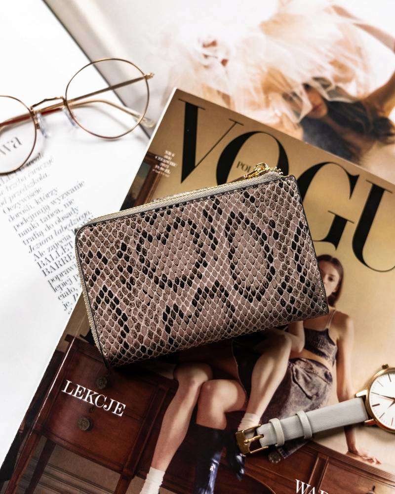 Šis elegantais sieviešu maks, kas izgatavots no augstas kvalitātes īstas ādas, ir dekorēts ar čūskādas motīvu, kas piešķir tam atšķirīgu stilu un greznību.