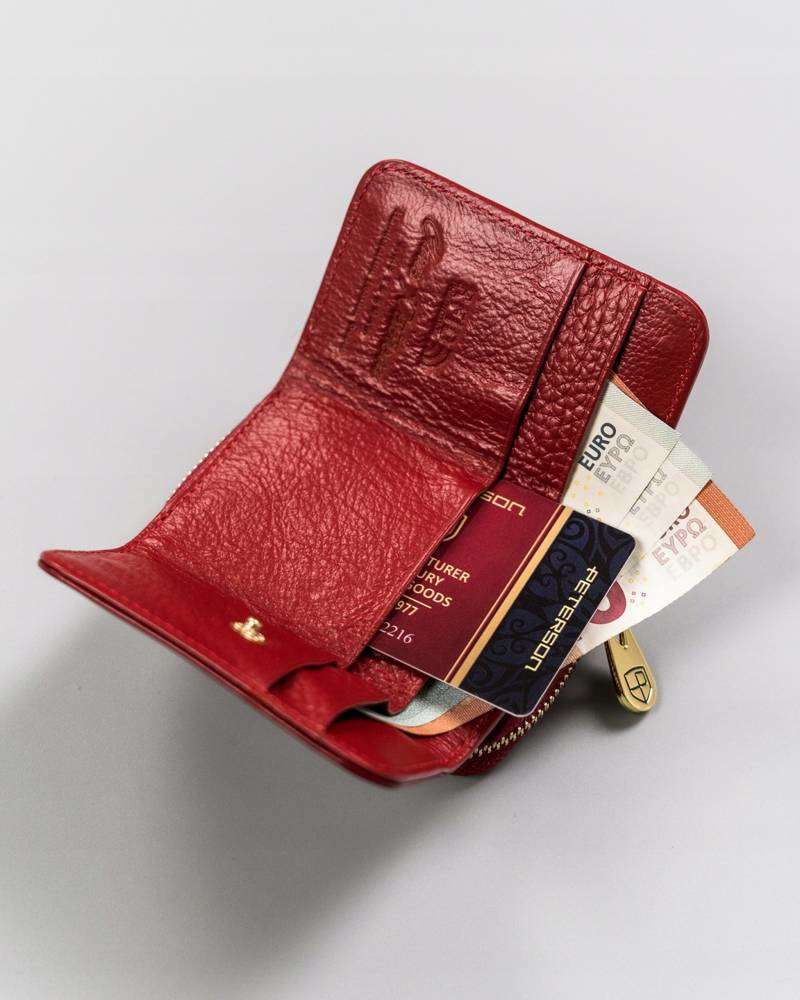 Šis sarkanais sieviešu maks ir izgatavots no augstas kvalitātes īstas ādas, kas ir ārkārtīgi patīkama pieskārienam. Neskatoties uz kompakto izmēru, maks ir pietiekami ietilpīgs, lai tajā glabātu gan dokumentus, gan skaidru naudu.