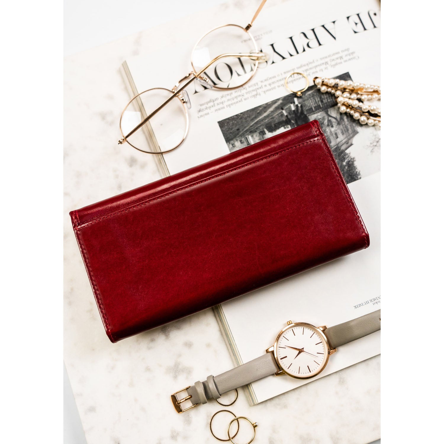 Šis elegantais sieviešu maks, kas izgatavots no īstas ādas, ir lieliska izvēle pilsētvides un ikdienas stilam. Sarkanā krāsa piešķir tam atšķirīgu izskatu, savukārt sudraba furnitūra piešķir smalku šarmu.